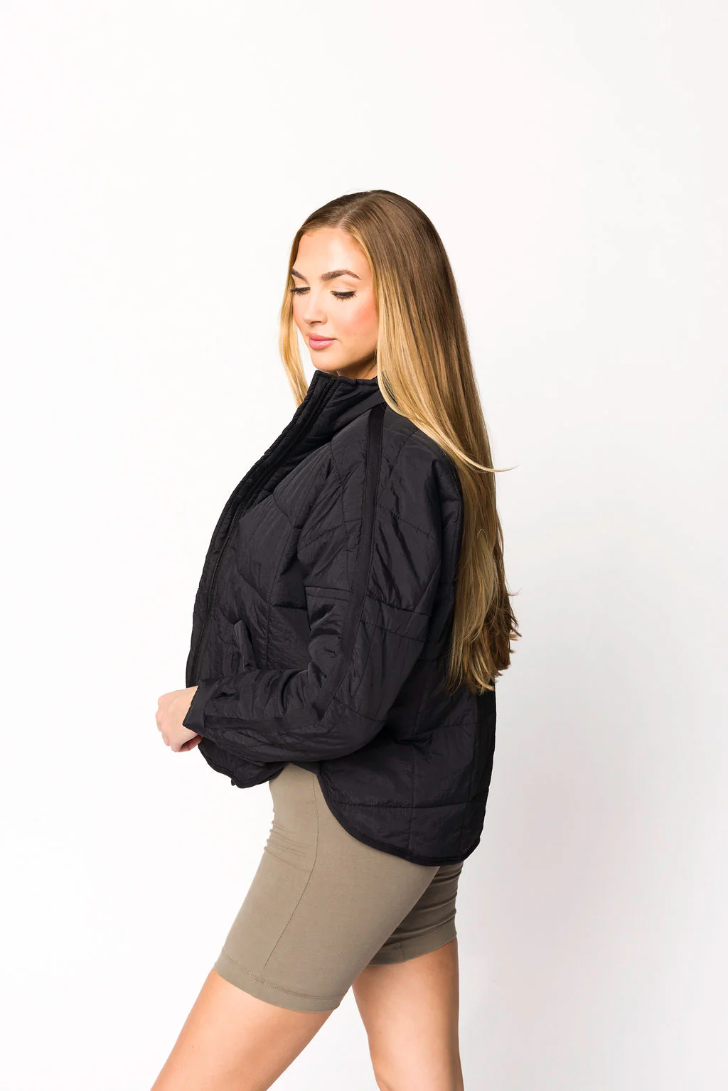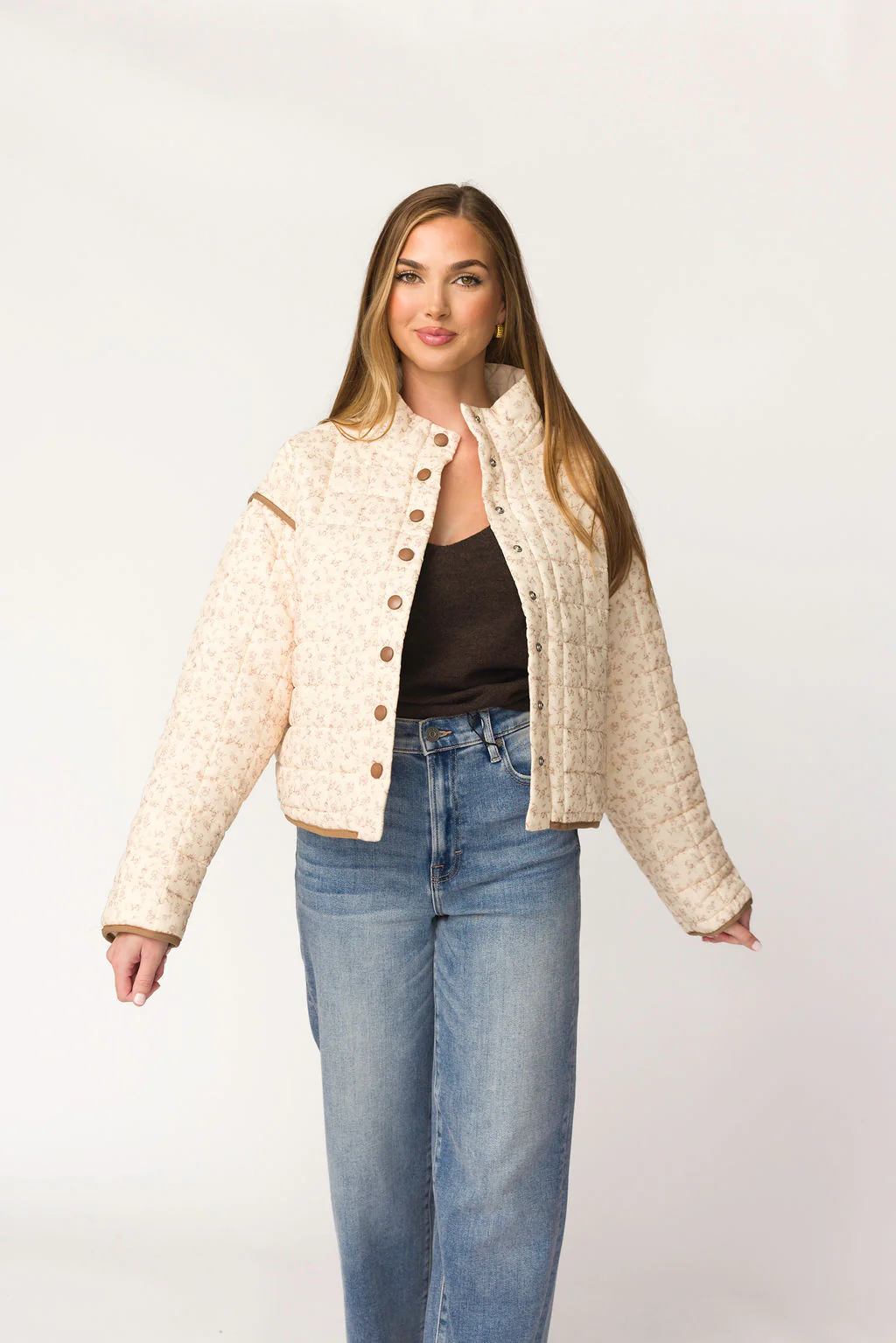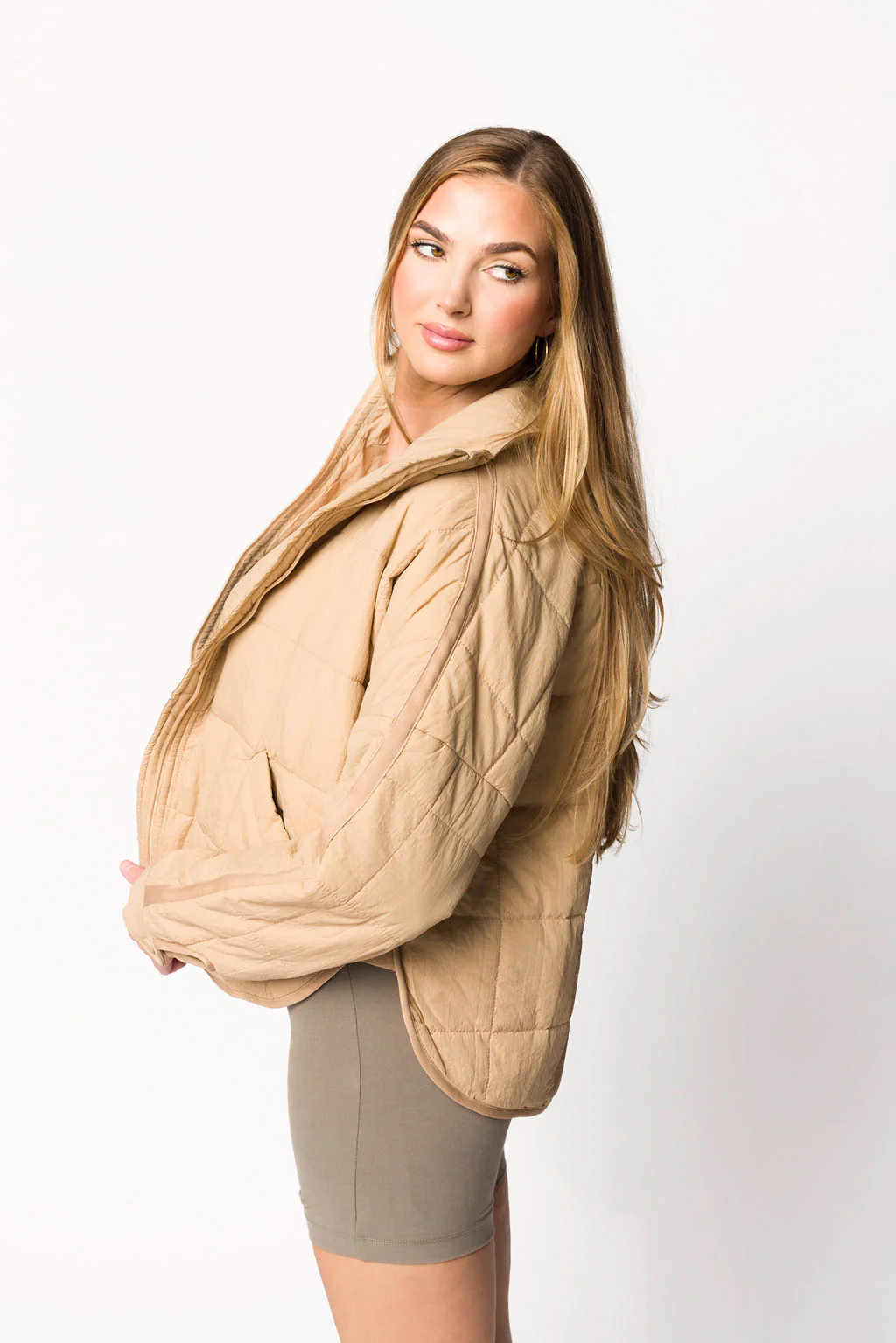 Jacey Quilted Jacket with Fluffy Shearling in Light Taupe