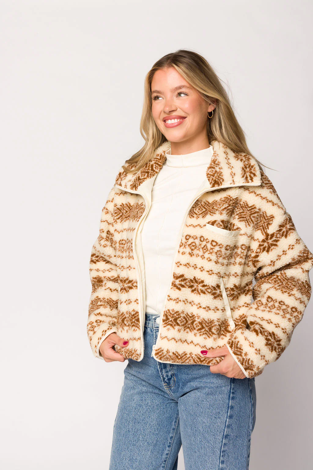 Luca Color-blocked Sherpa Jacket in Coconut Milk/Camel