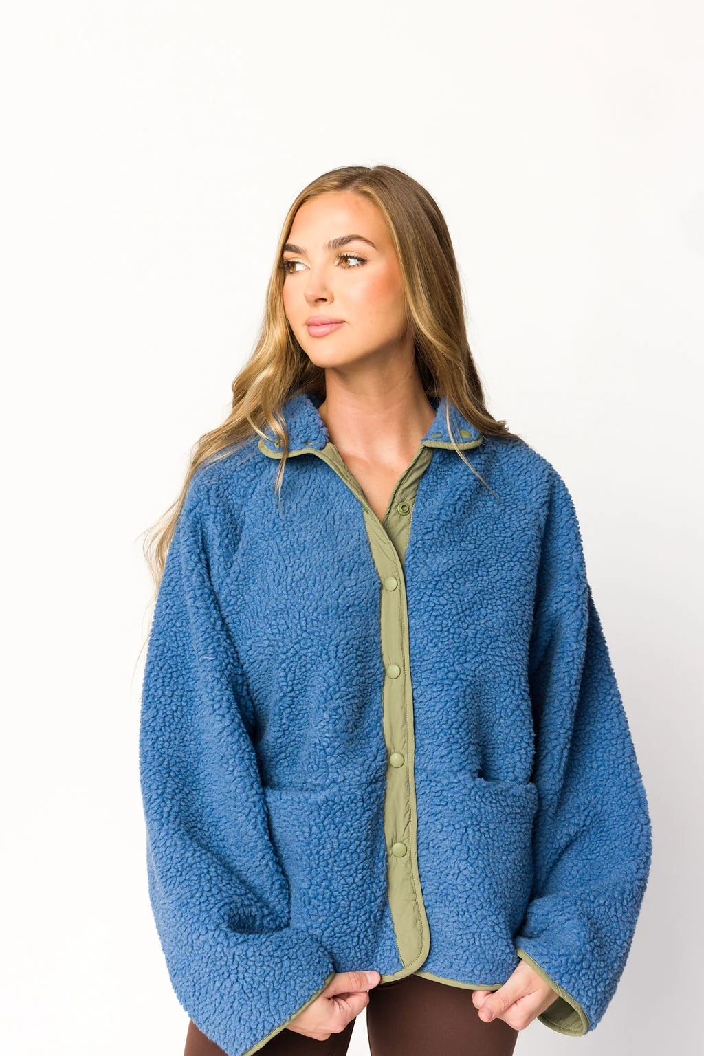 Abby Sherpa and Suede Reversible Jacket in Olive