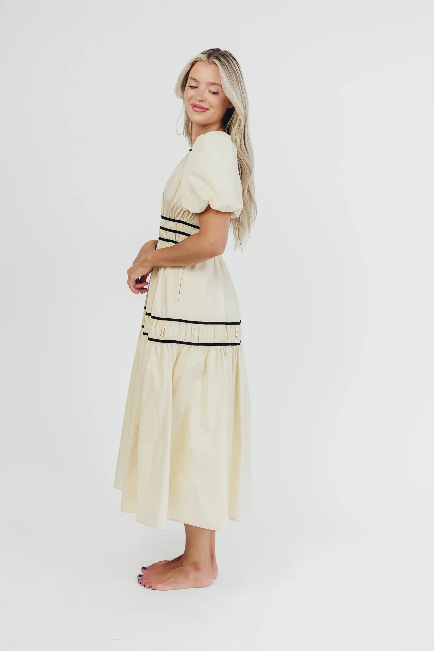 Bradley Puffed Sleeve Tiered Maxi Dress in Cream/Black