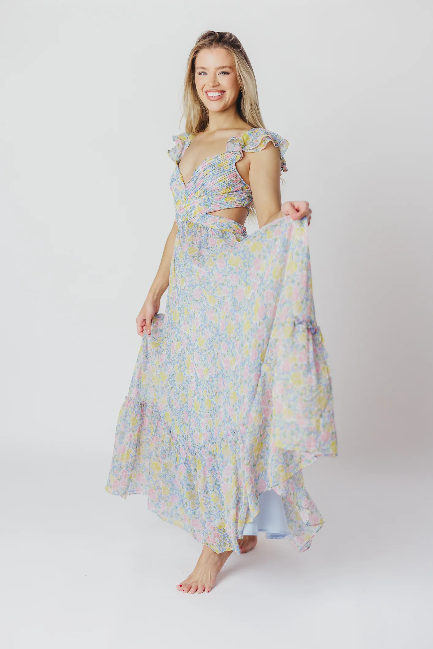 ASTR Primrose Maxi Dress in Blue/Pink Floral