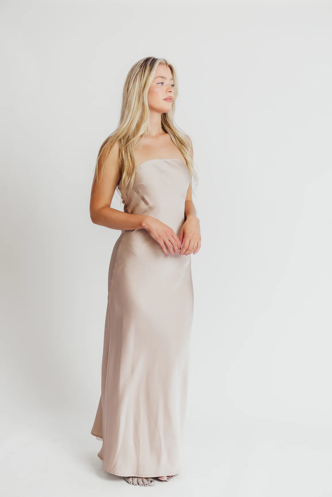 Going Out Strapless Bias Cut Maxi Dress in Champagne