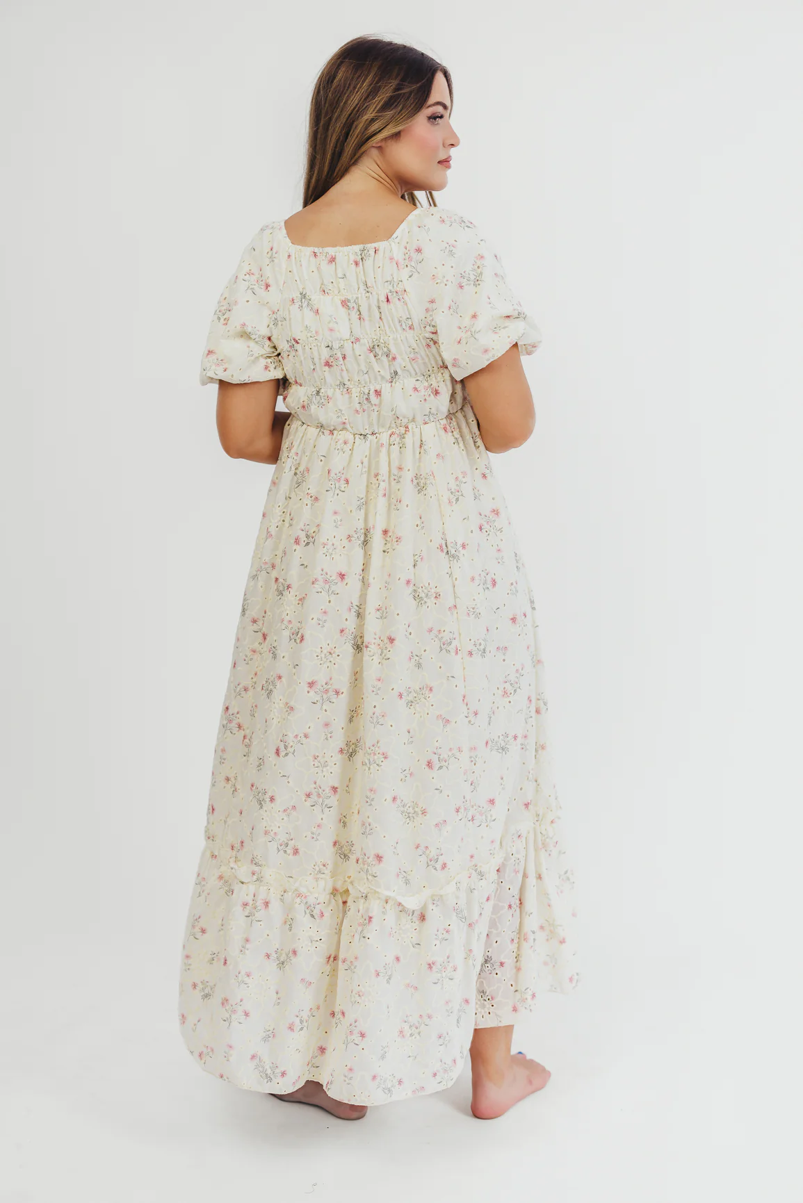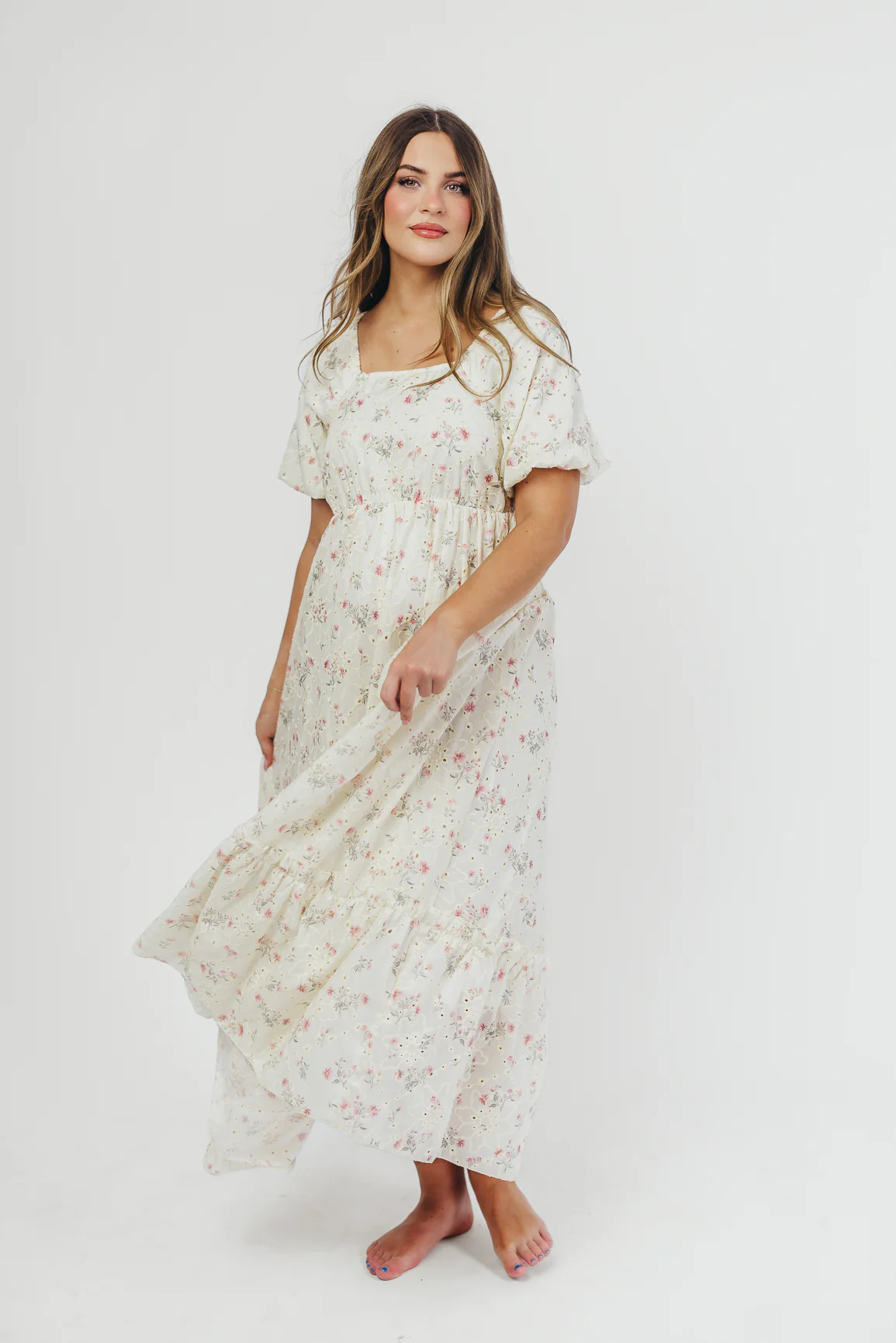 Remi Eyelet Floral Maxi Dress in Ivory