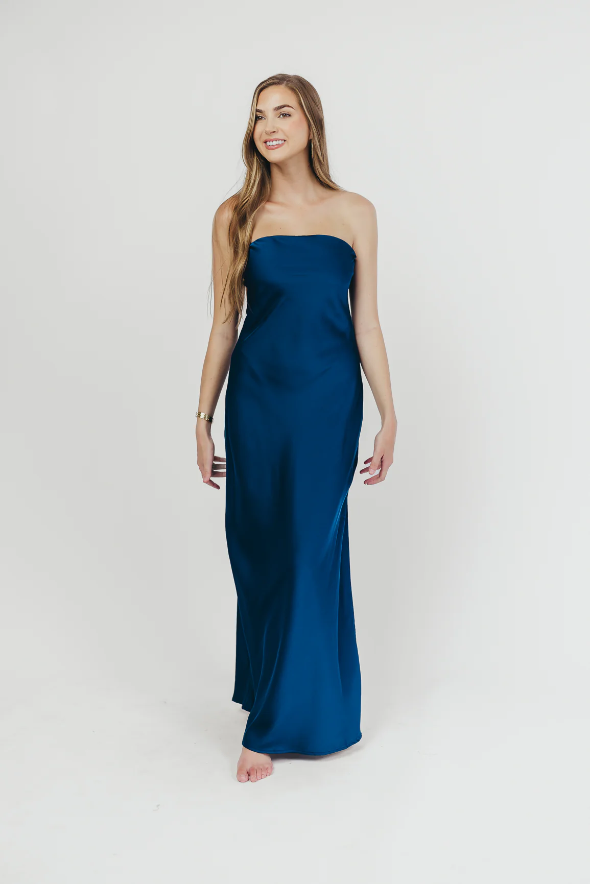 Going Out Strapless Maxi Dress in Peacock Blue