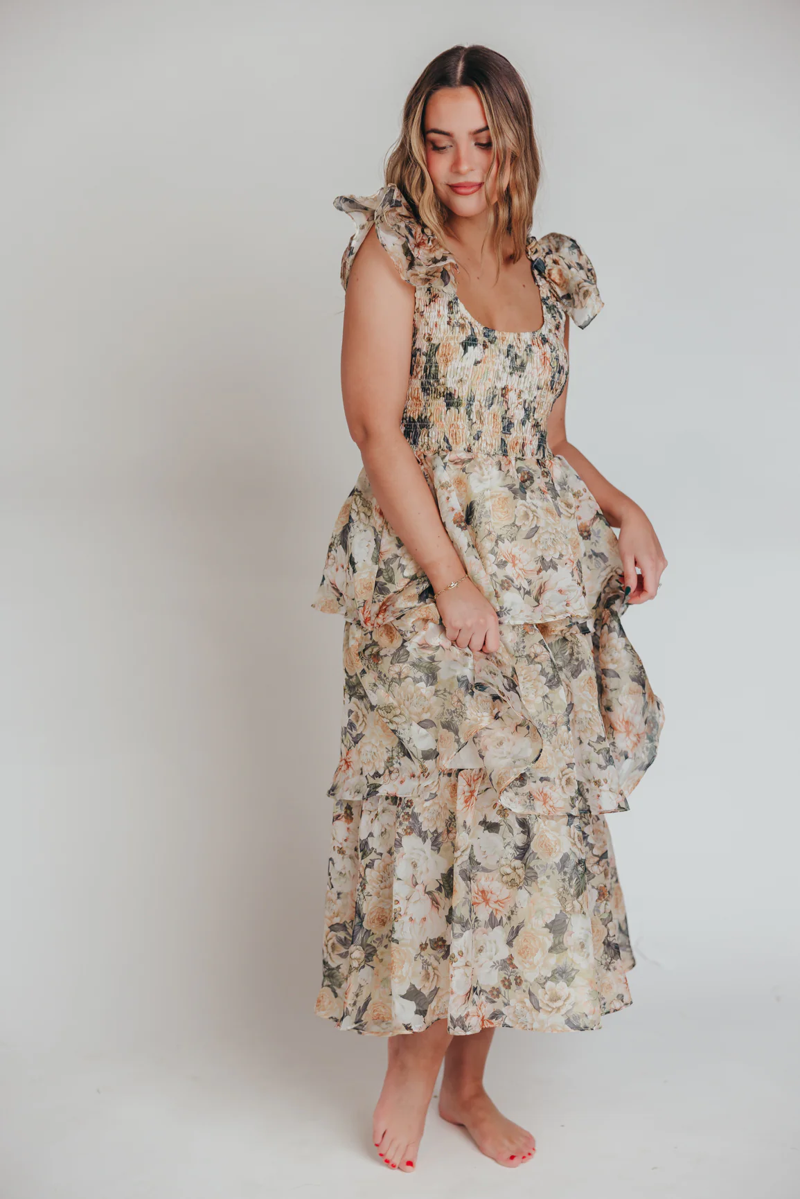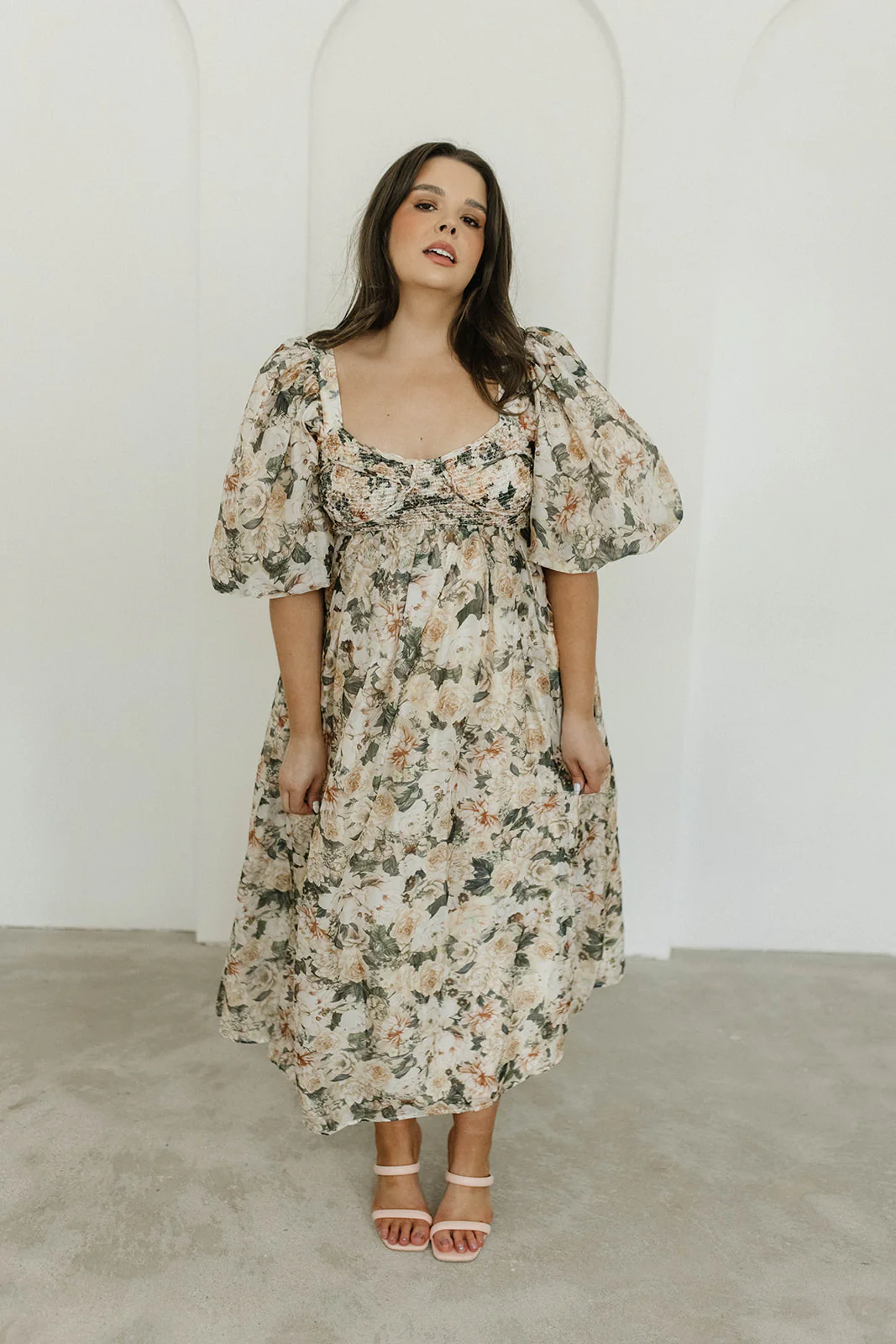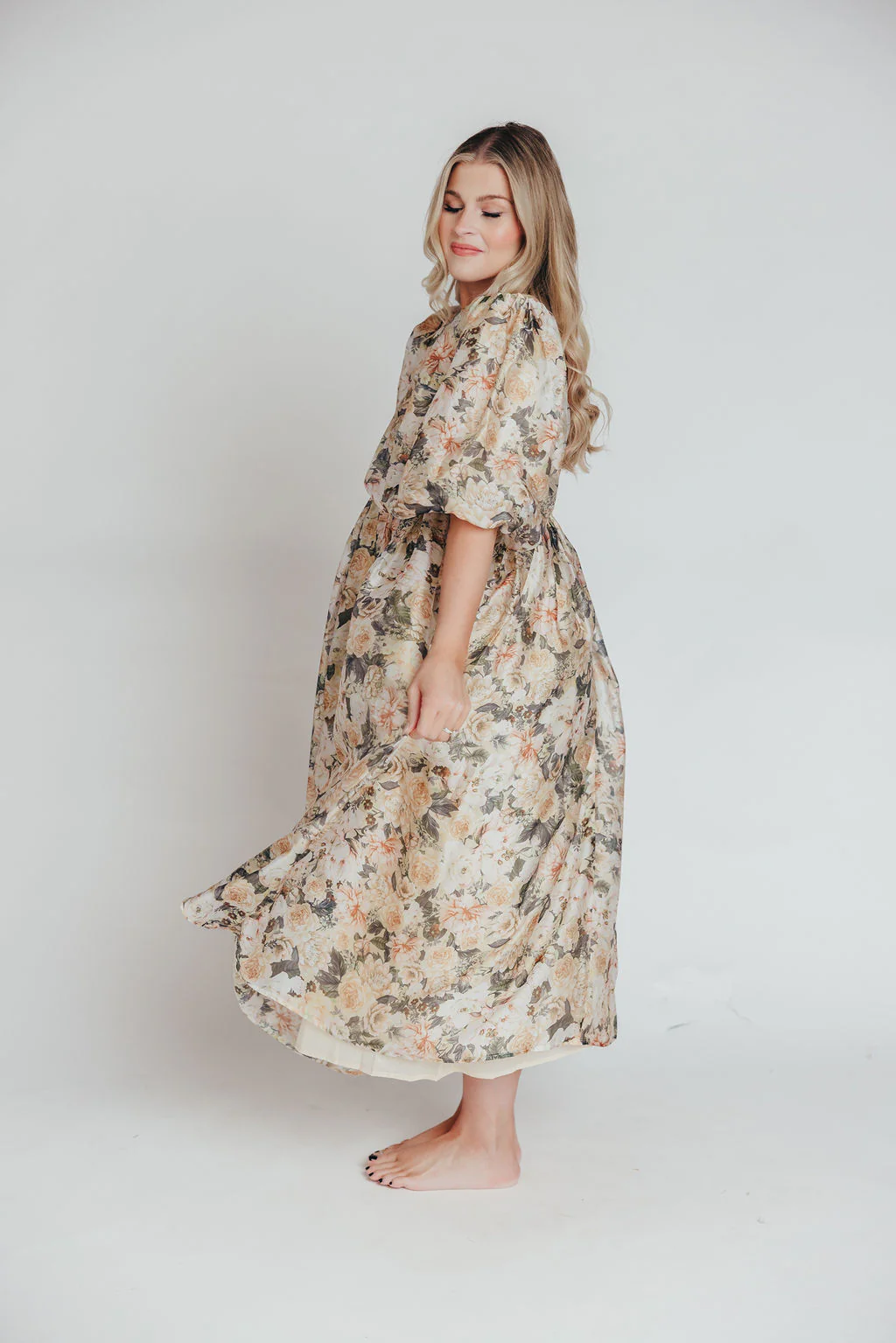 Forever & Always Midi Dress in Champagne Floral - Bump Friendly & Inclusive Sizing (S-3XL)