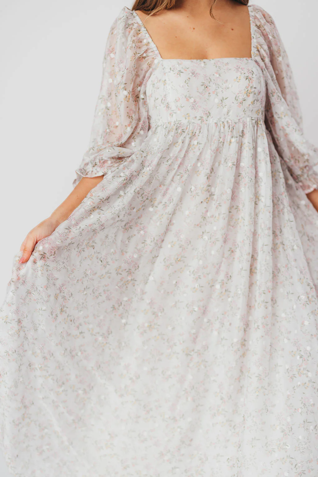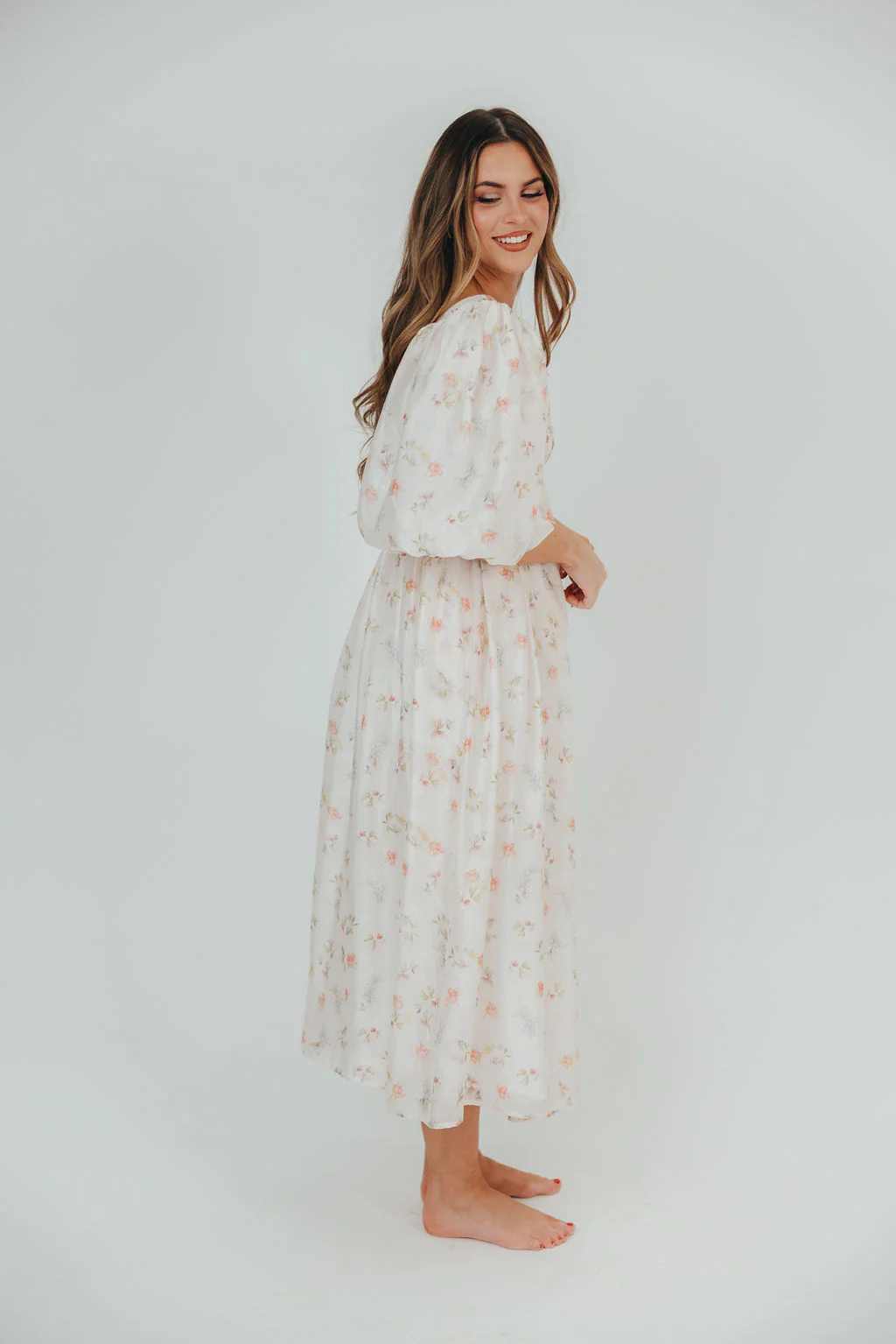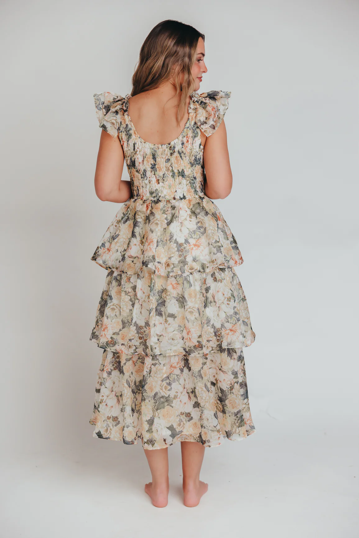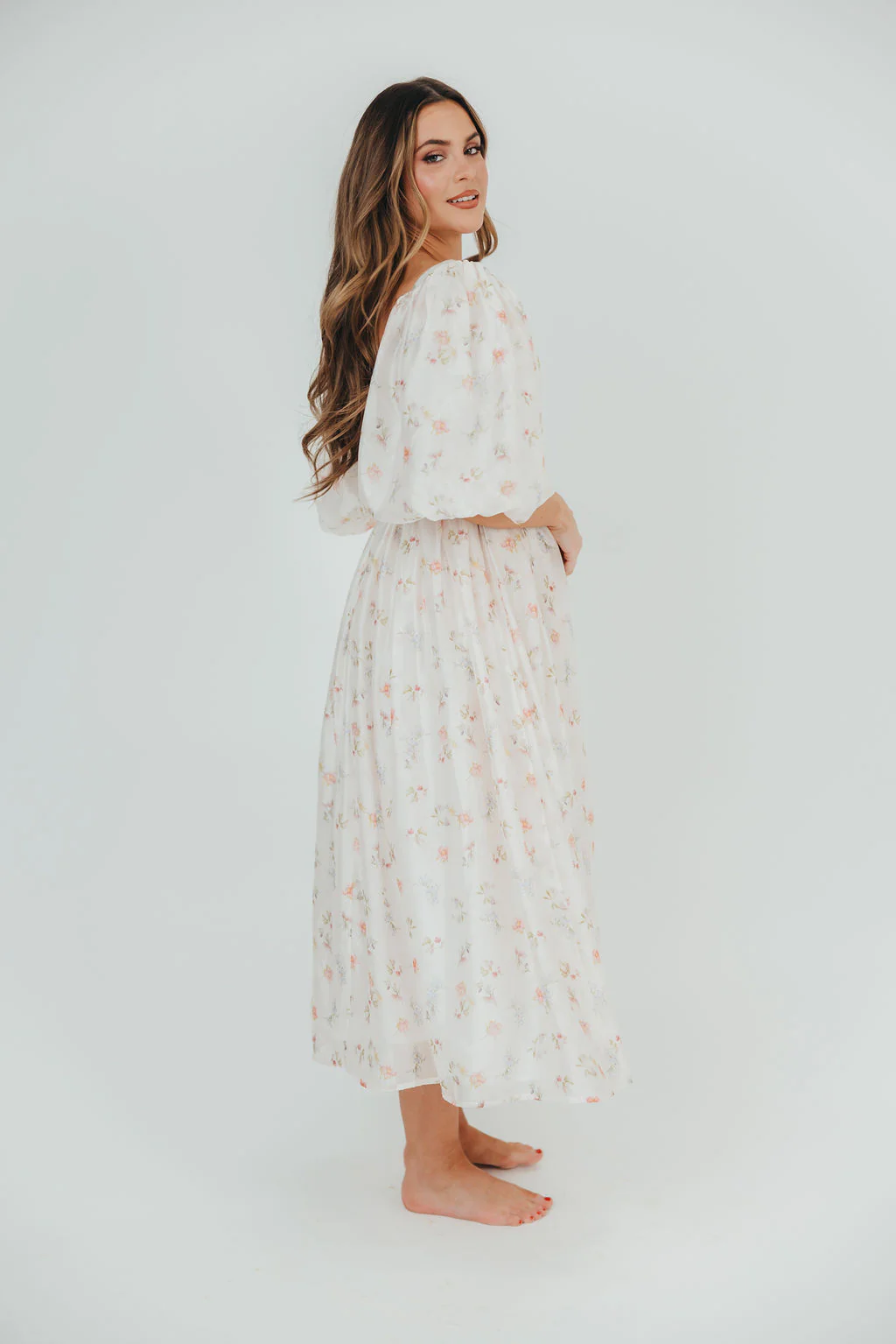 Forever & Always Midi Dress in Champagne Floral - Bump Friendly & Inclusive Sizing (S-3XL)