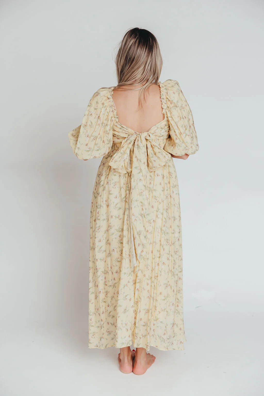 Melody Maxi Dress with Pleats and Bow Detail in Yellow Floral - Bump Friendly & Inclusive Sizing (S-3XL)