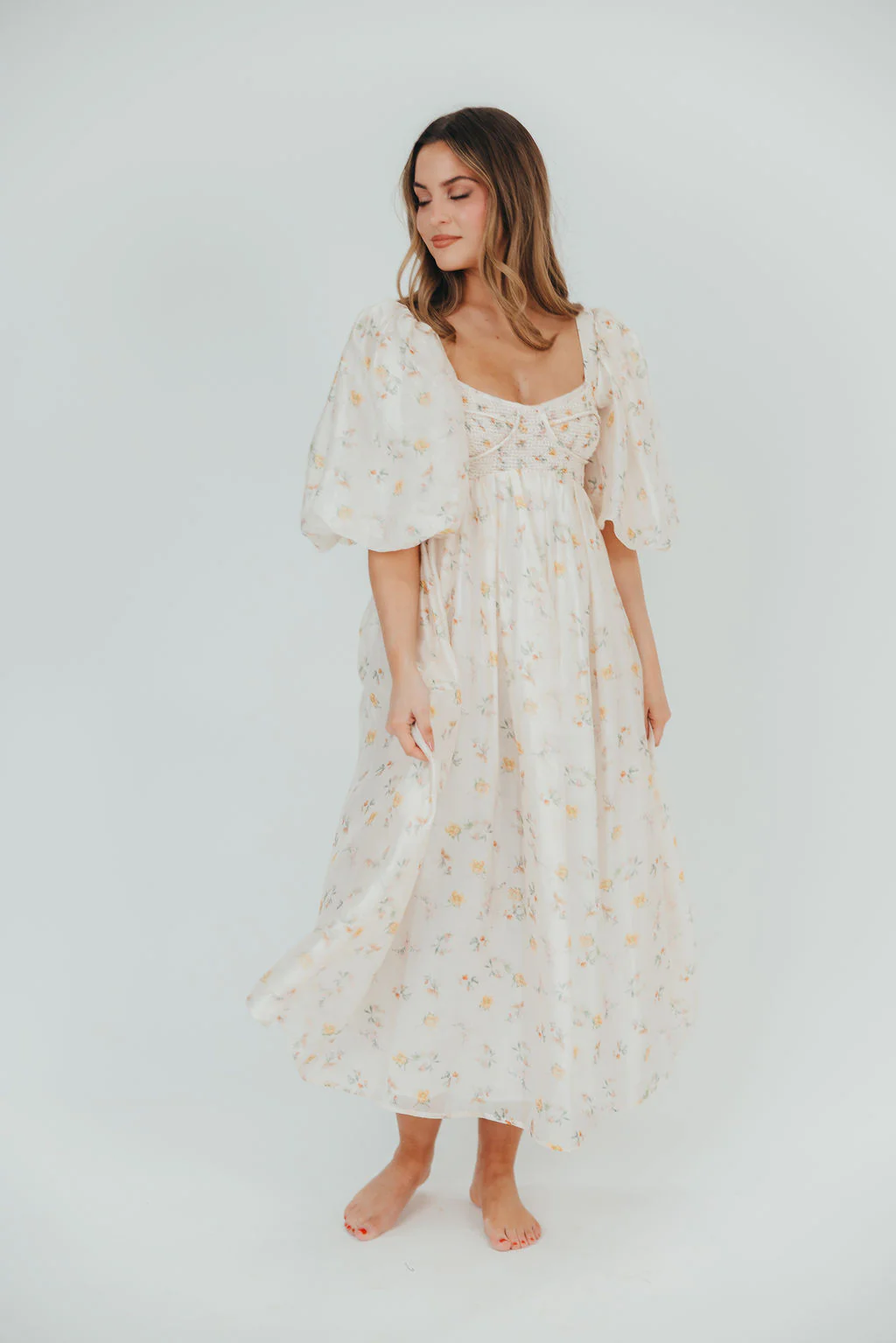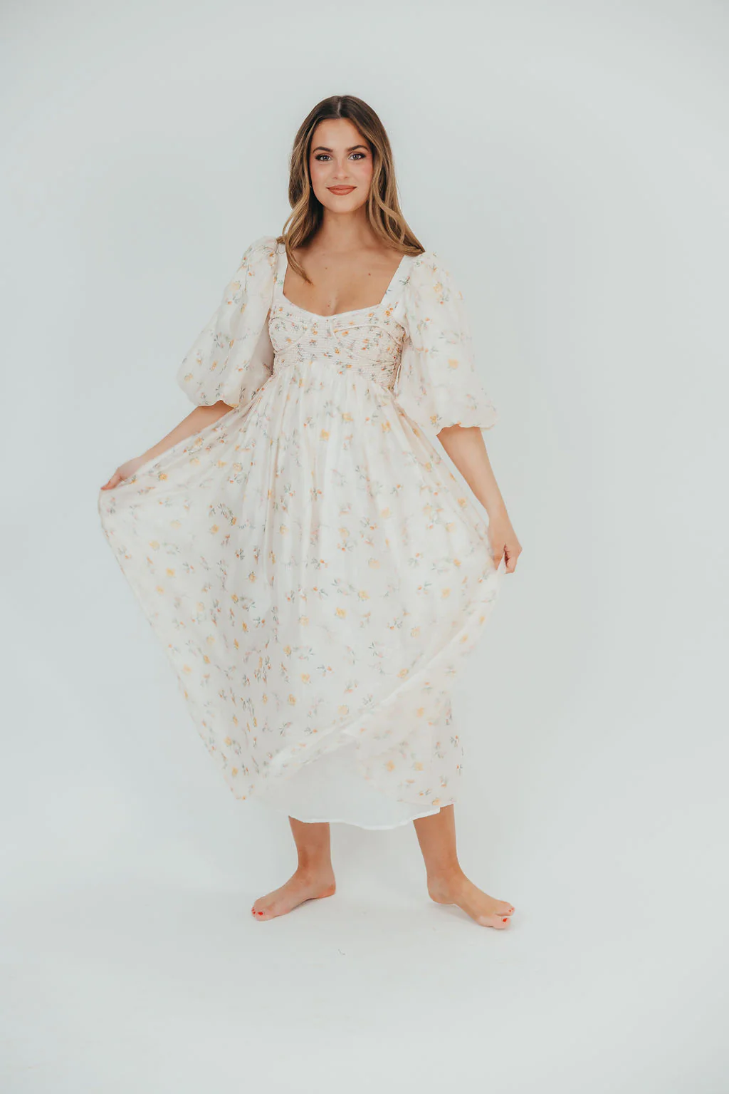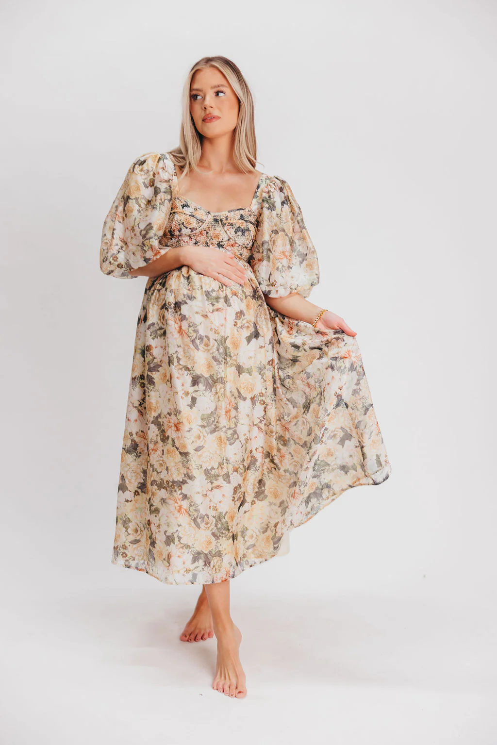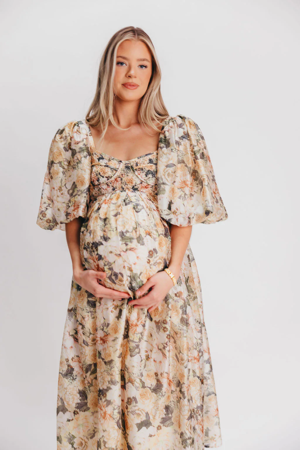 Mona Maxi Dress with Smocking in Butter Floral - Bump Friendly (S-3XL)