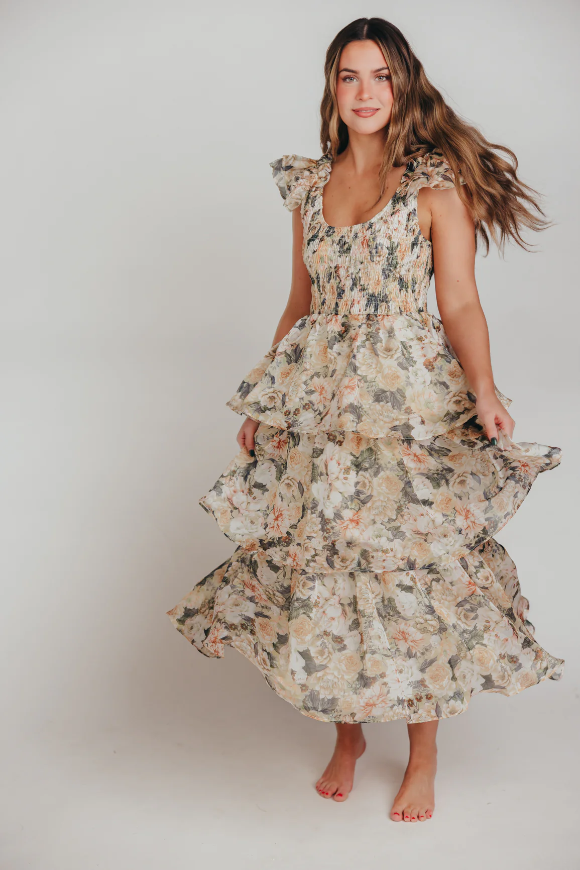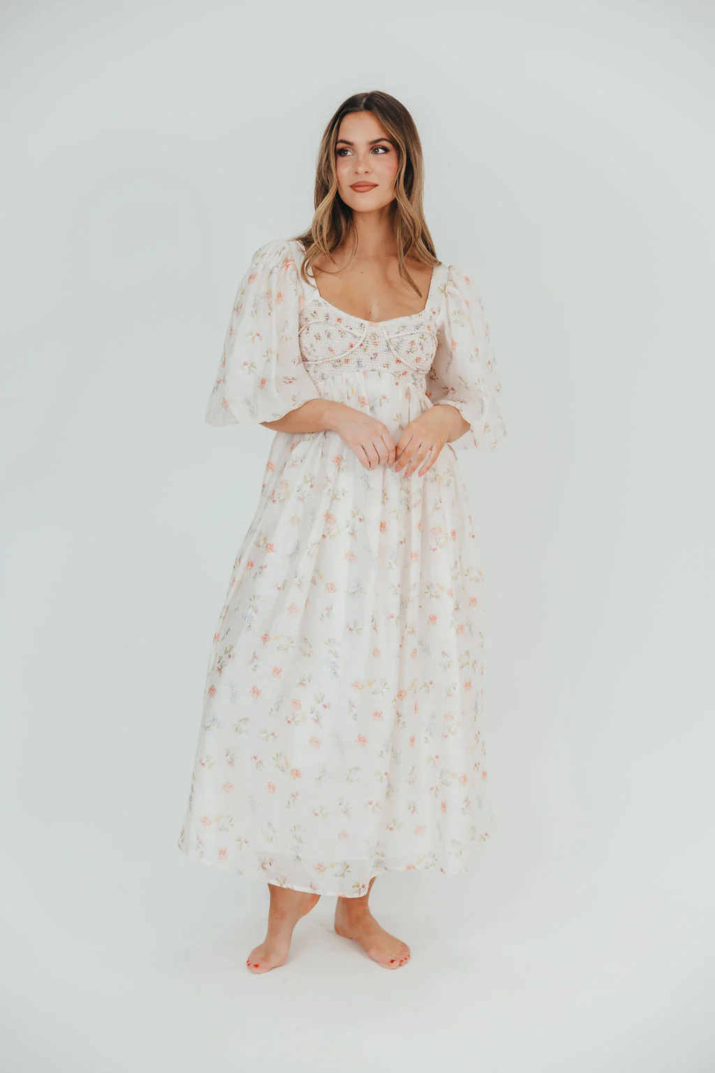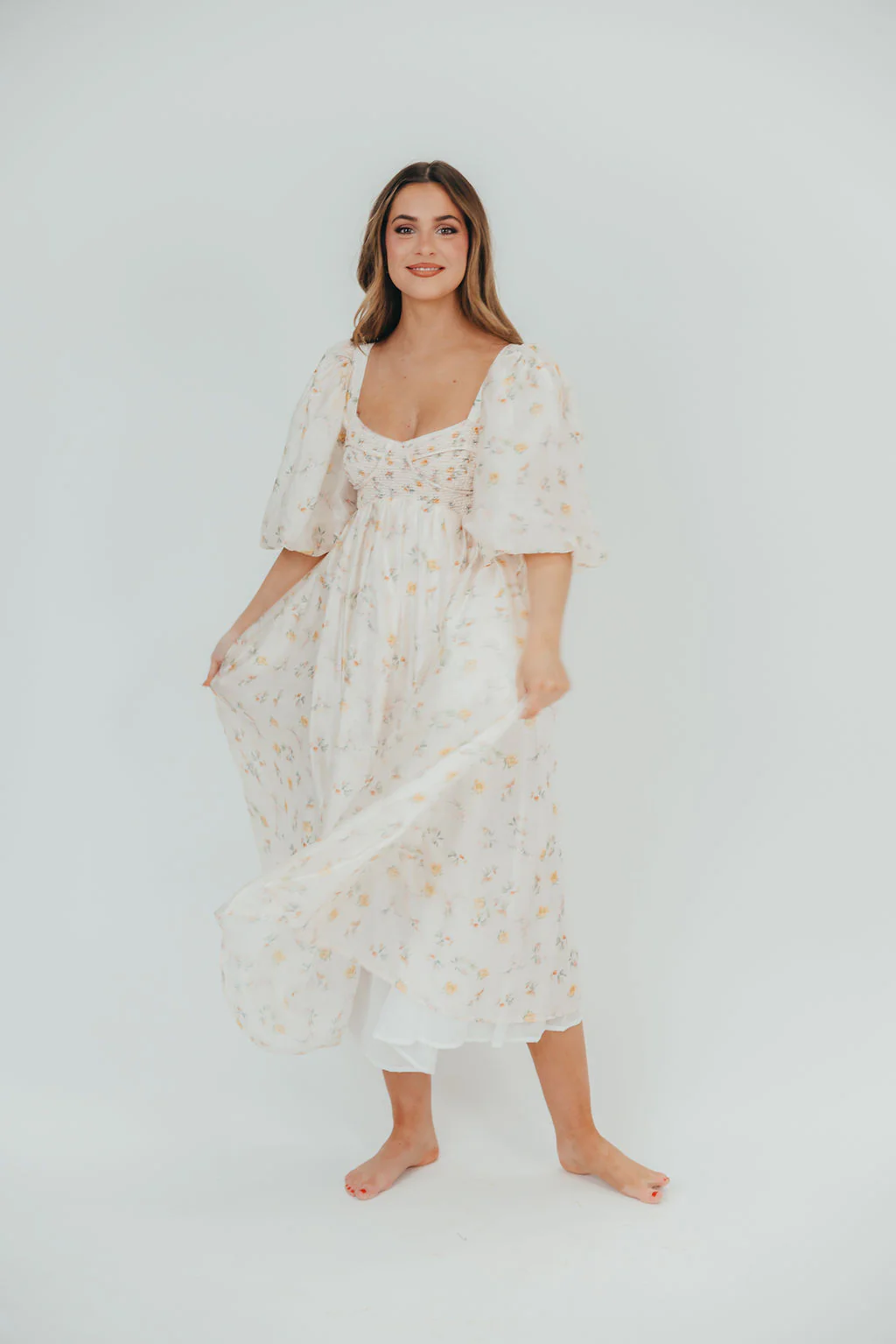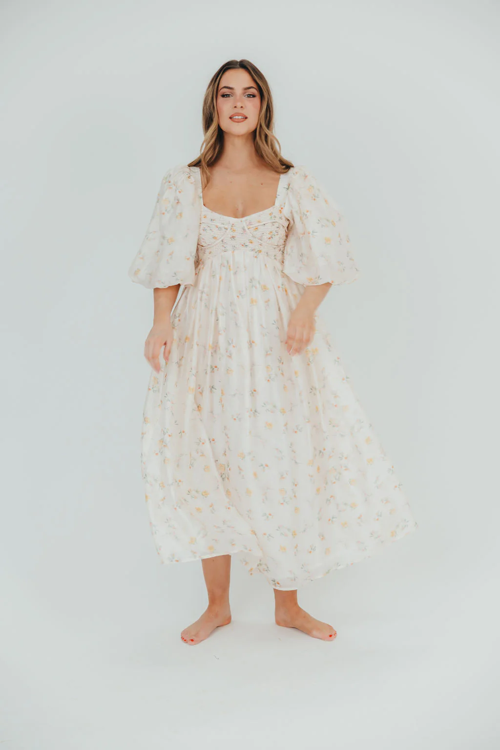 Mona Maxi Dress with Smocking in Butter Floral - Bump Friendly (S-3XL)