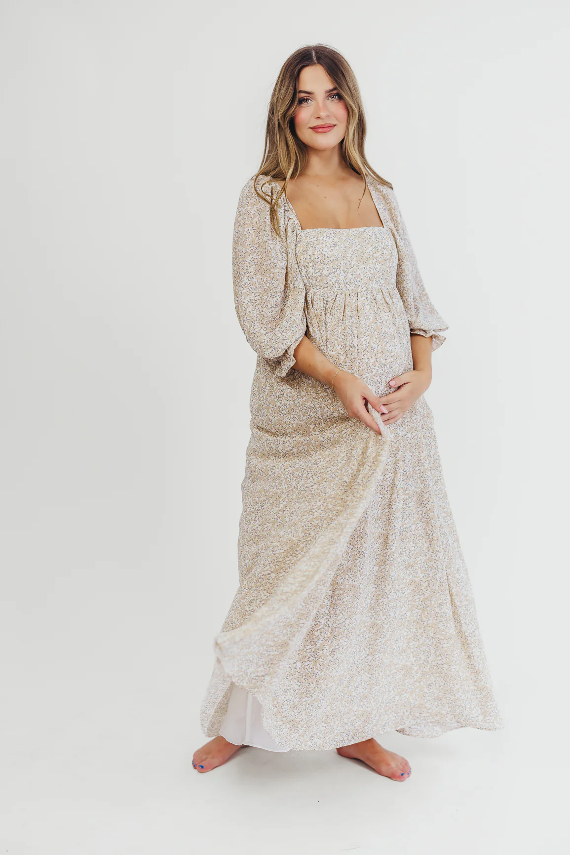 Harlow Maxi Dress in Champagne Floral - Bump Friendly & Inclusive Sizing (S-3XL)