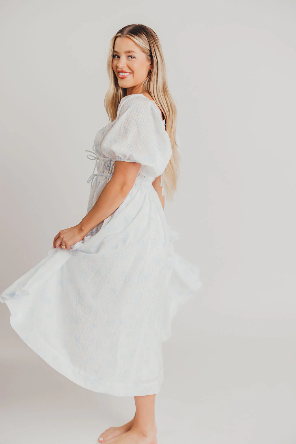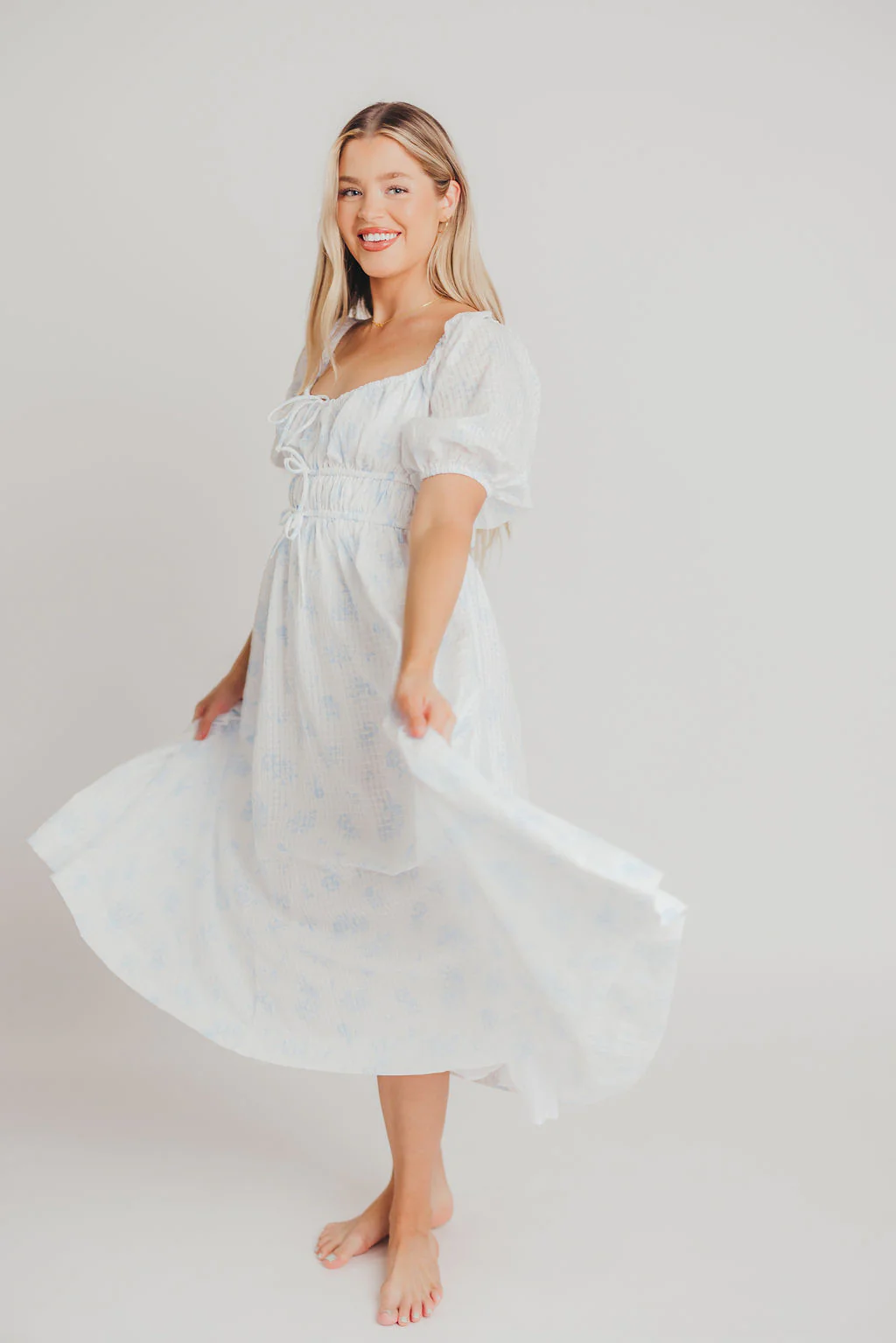 Ada Smocked Dress in Blue Floral - Bump Friendly & Inclusive Sizing (S-3XL)