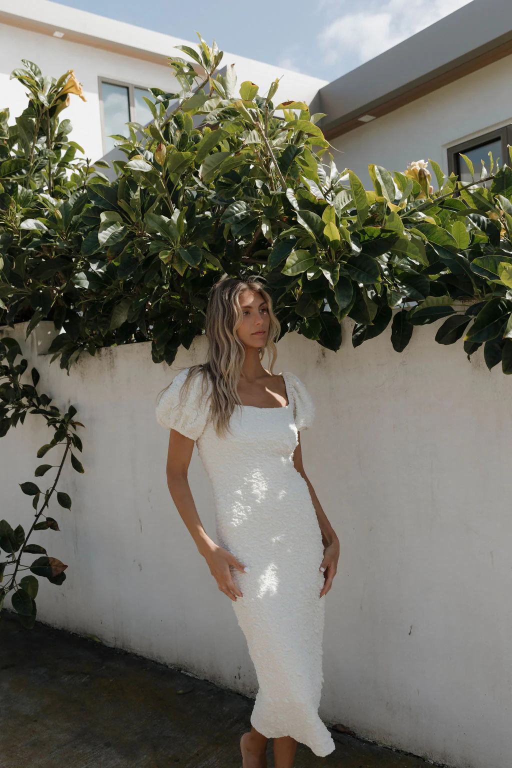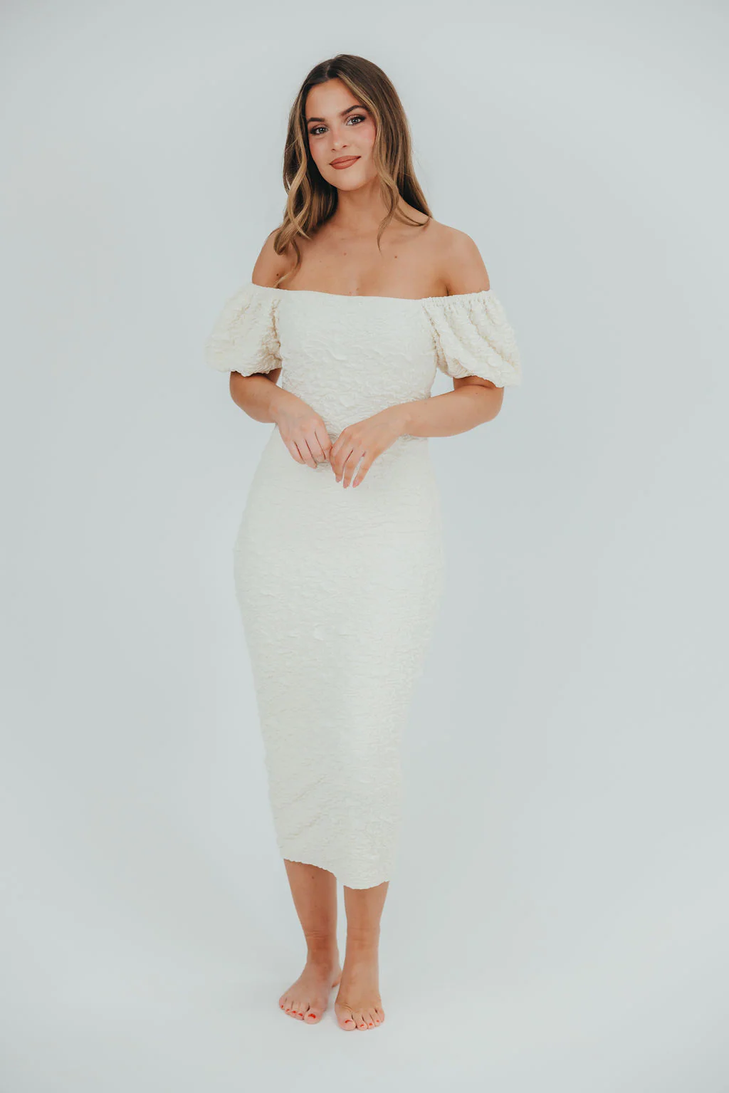 Blakeley Textured Midi Dress in Ivory - Bump Friendly & Inclusive Sizing (S-3XL)