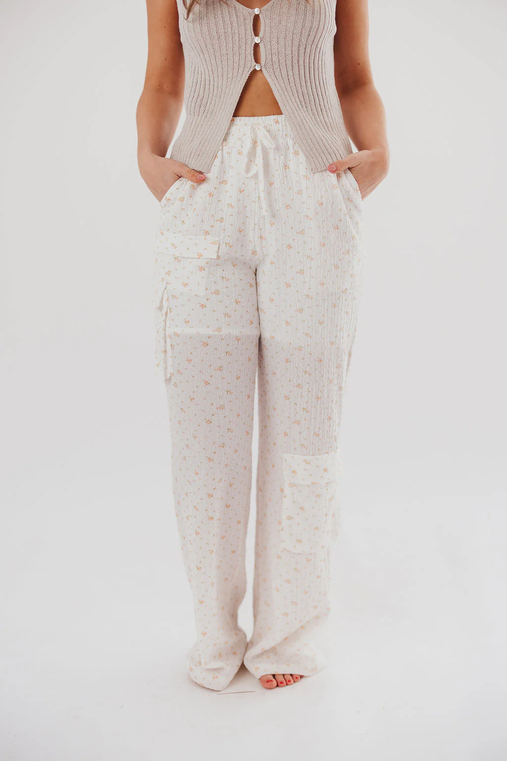 Teagan Crinkle Cargo Pants in Off-White Floral