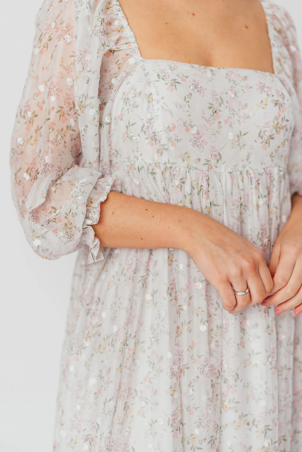 *New* Mona Maxi Dress with Smocking in Grey Floral - Bump Friendly (S-3XL)