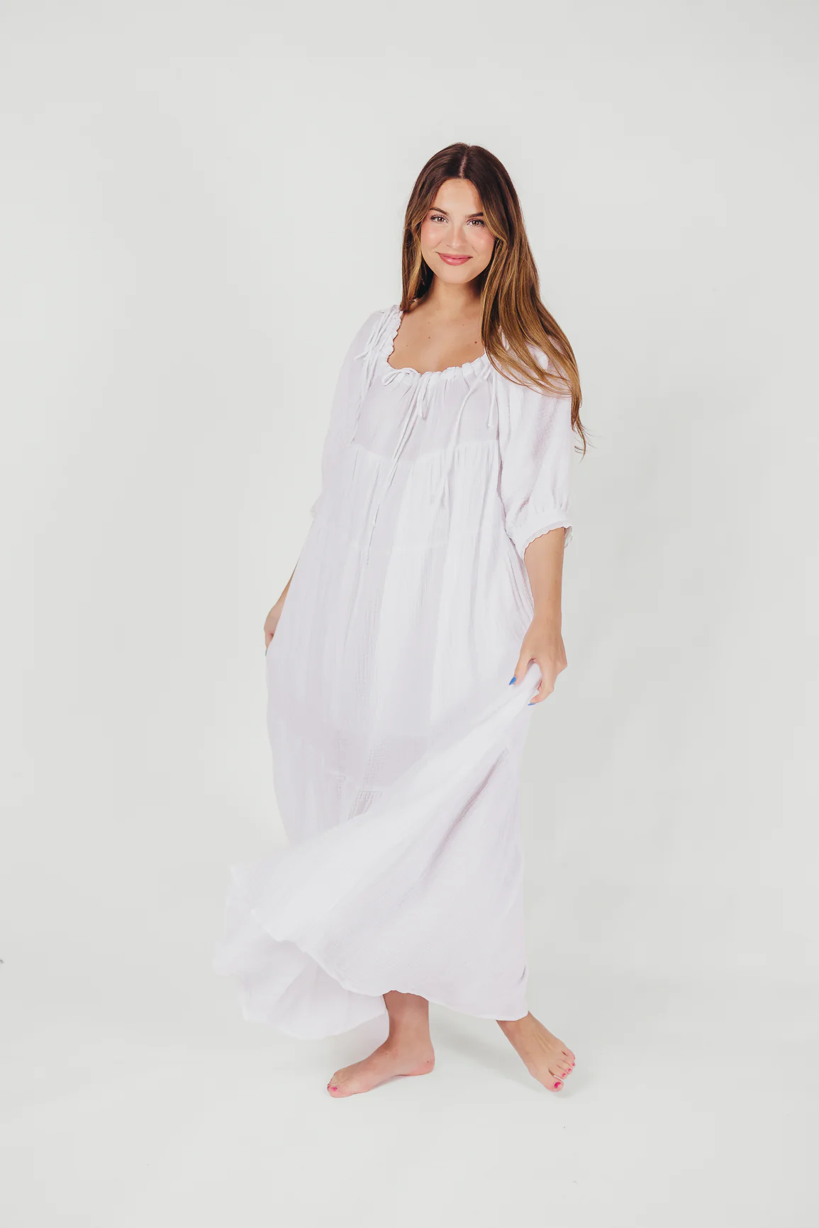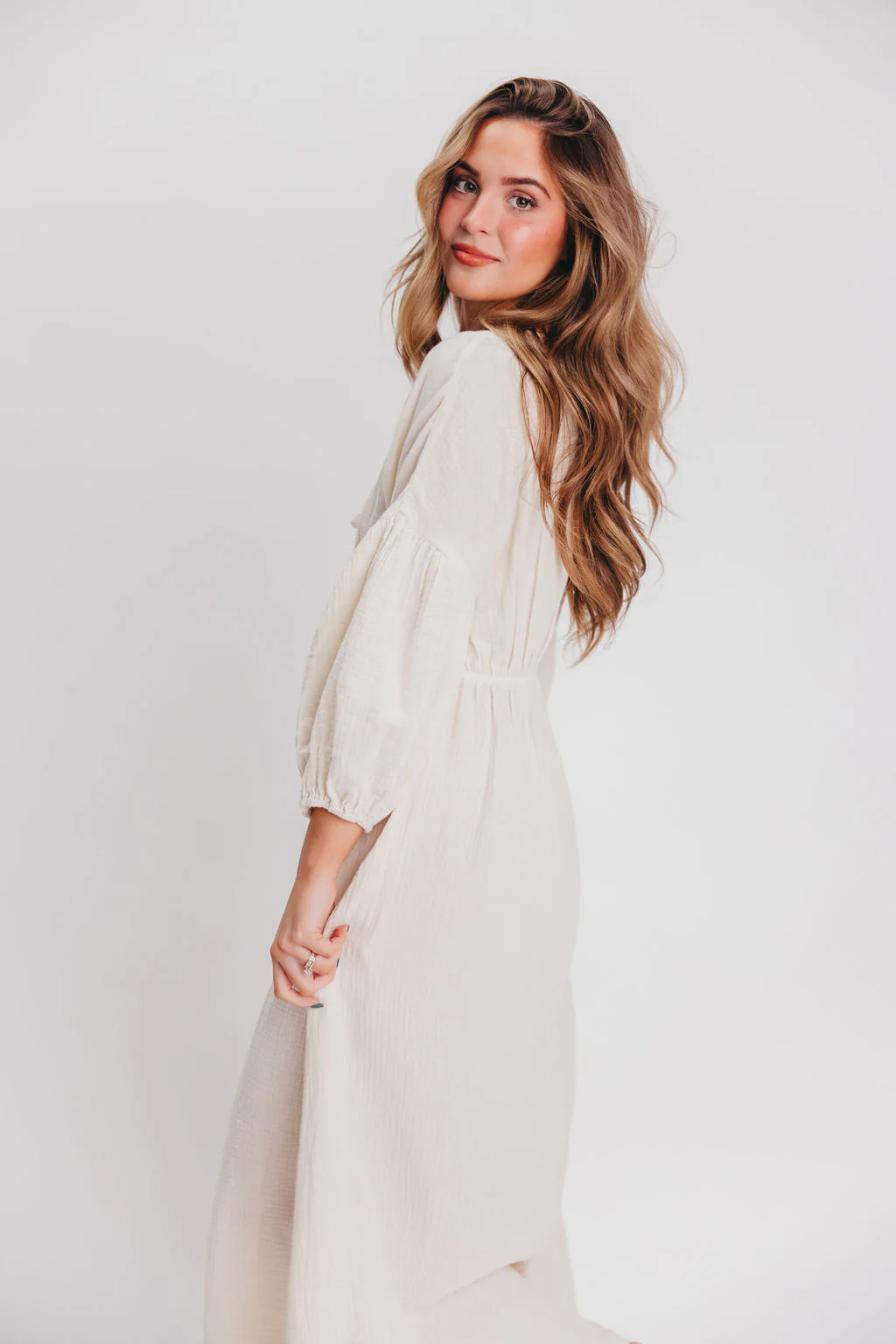 Jemma Butter Modal Mockneck Top with Merrow Edge from P.Cill in Eggshell